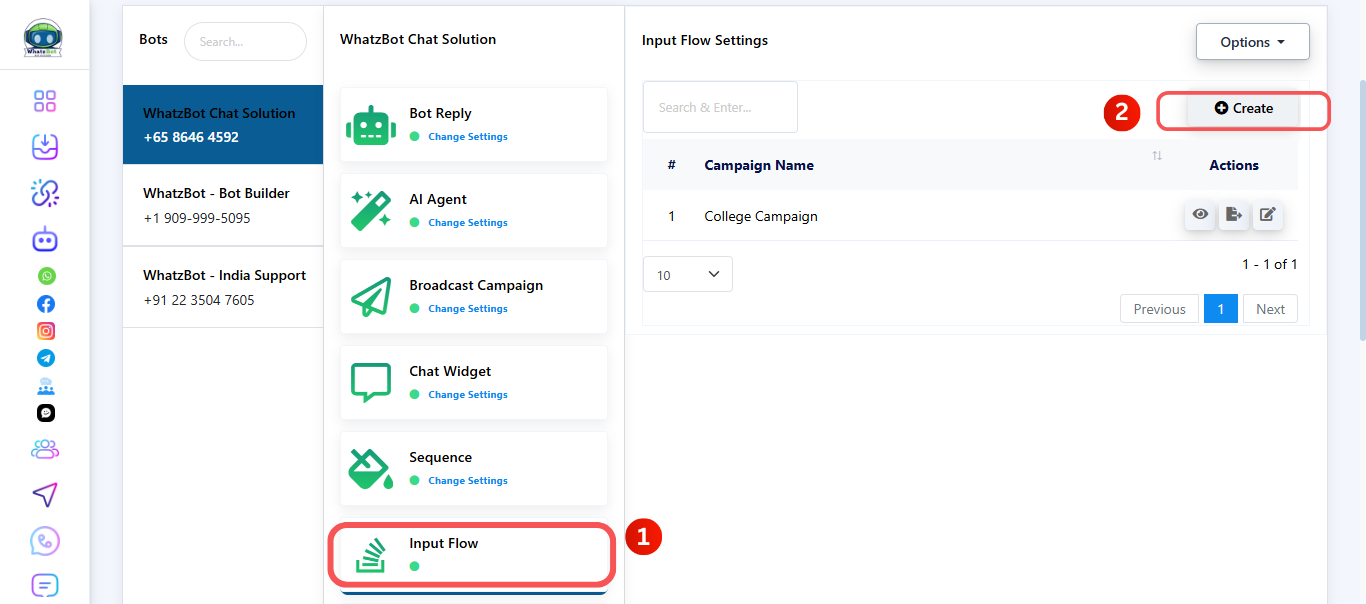 The User Input Flow in WhatzBot helps you to make an input flow for your WhatsApp which you can use later on in your Bot. In this panel you can edit your input flow and also export your flow data.